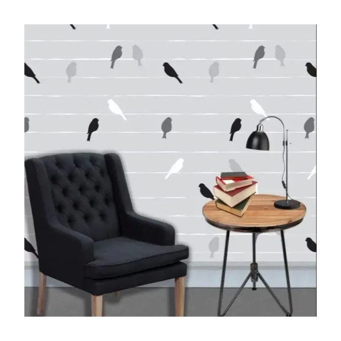 Decore sua parede com Papel de Parede adesivo fundo Cinza Pássaros passarinho, móvel ou eletrodoméstico, adesivo para o quarto infantil, decoração da sala, decoração do quarto, adesivo papel de parede para quarto do bebê, adesivo da sala de jantar, papel de parede cozinha, várias possibilidades de uso. Mais fácil pra instalar, pois não é necessário o uso de cola.