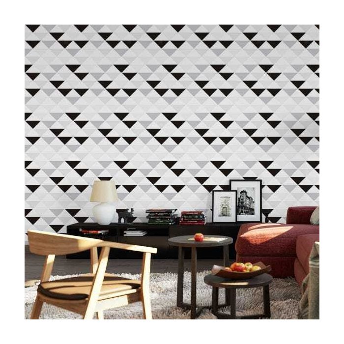 Papel de Parede Adesivo Geométrico Triângulos Preto e Cinza