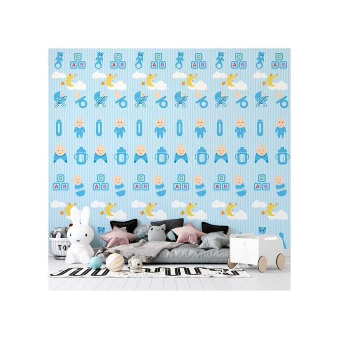 Papel De Parede Adesivo Infantil Céu Azul Abc Menino - 10m