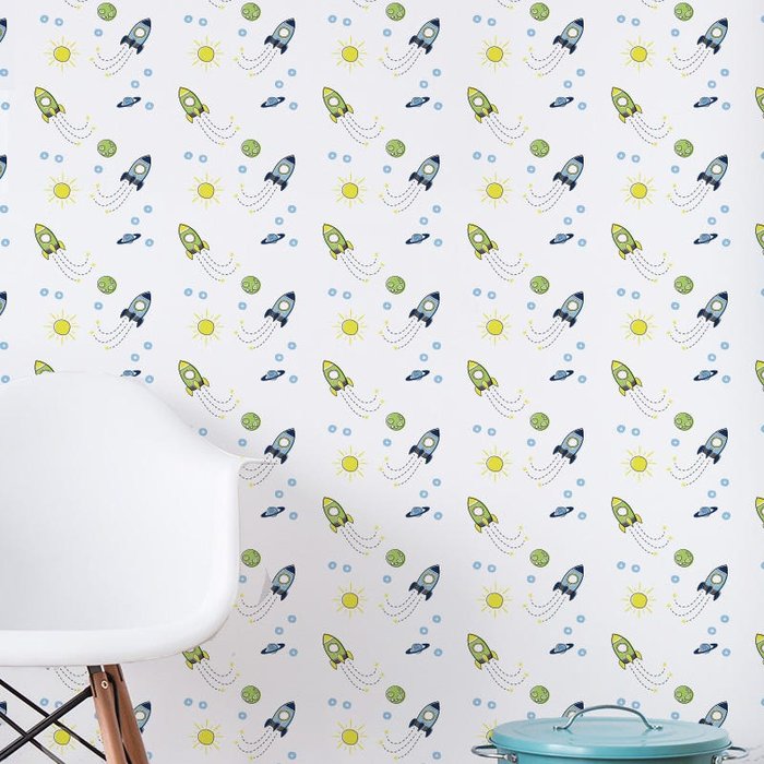 Papel de Parede Adesivo Infantil Foguete Sol e Lua 2,70x0,57m