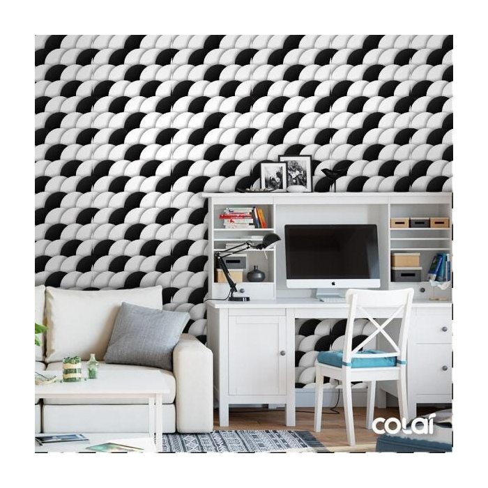 Papel De Parede Adesivo Lavável Circulos Brancos E Pretos 18M