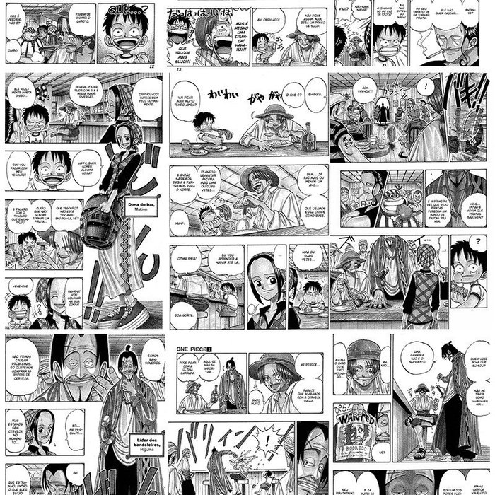 Papel De Parede Adesivo Lavável Quarto Mangá One Piece Anime 1mx50cm Preto e Branco