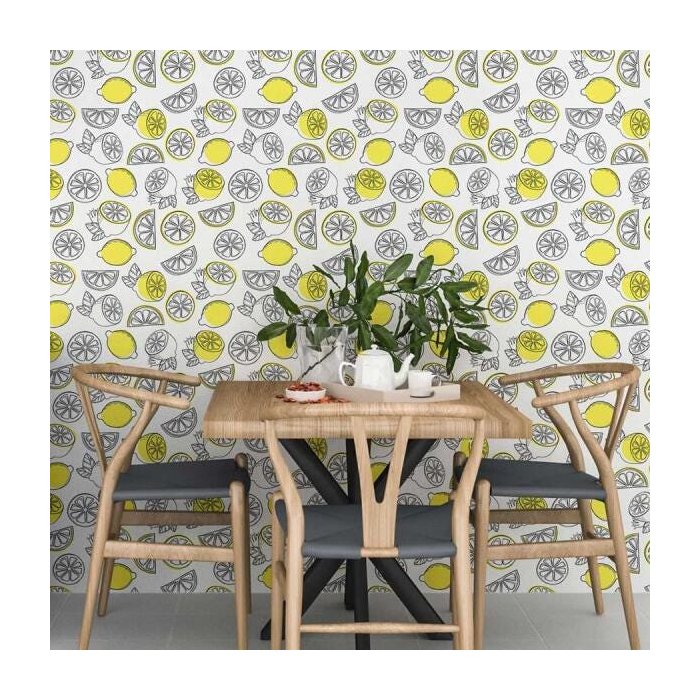 Papel de Parede Adesivo Limão Siciliano Fundo Branco N06020 Rolo de 0,58x3,00