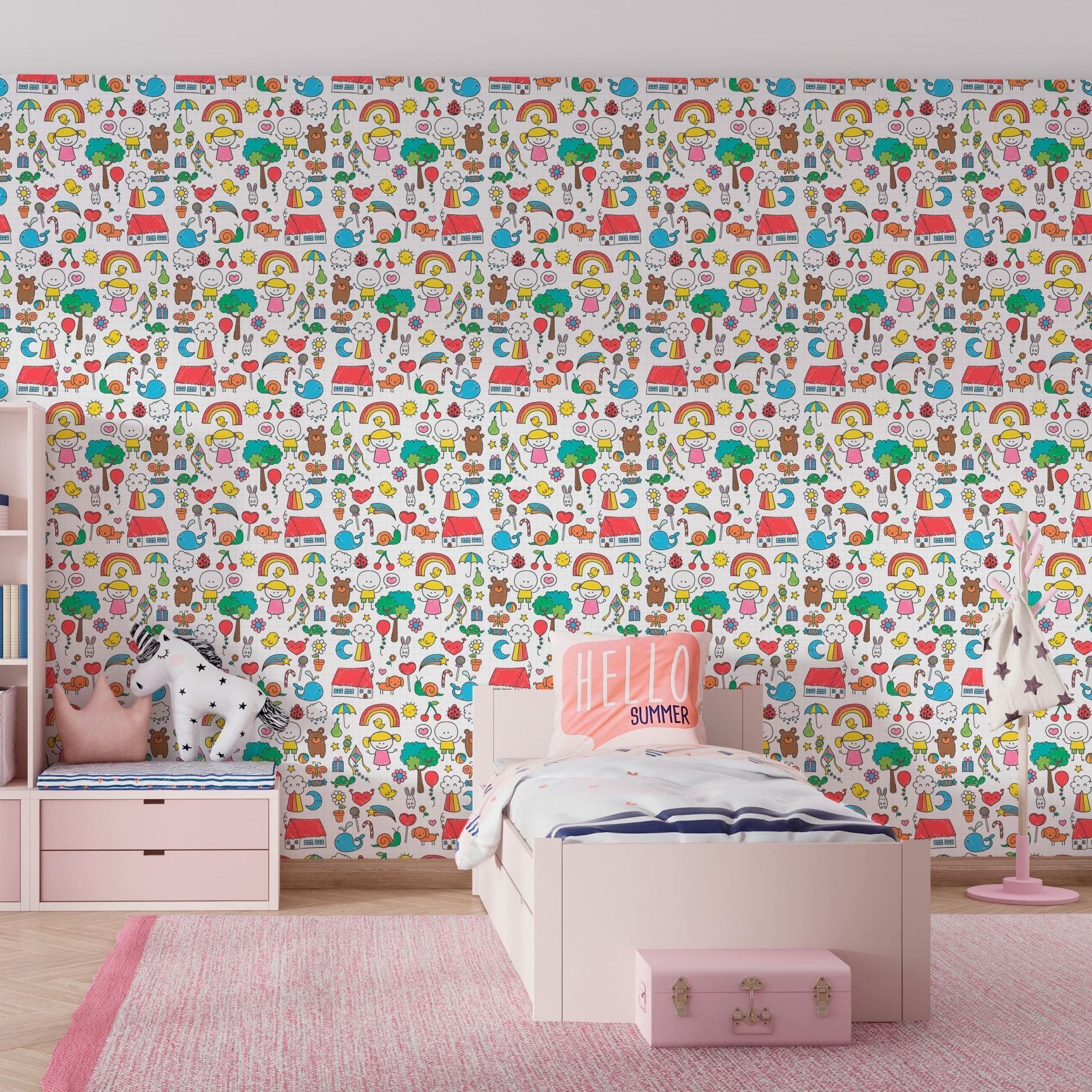Papel de Parede Adesivo Menina Desenhos Coloridos