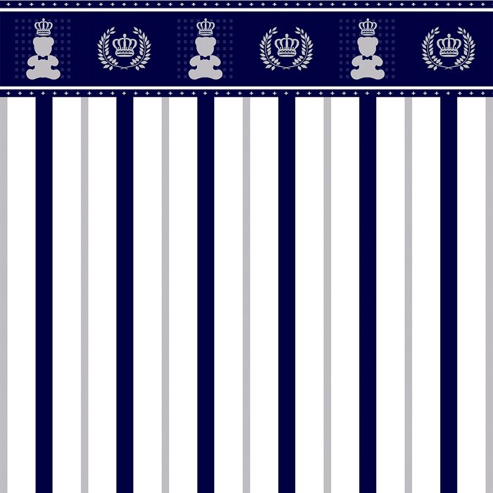 Papel de Parede Adesivo Para Meia Parede Quarto Bebê Azul Marinho Branco Cinza Com Faixa de - ROLO -