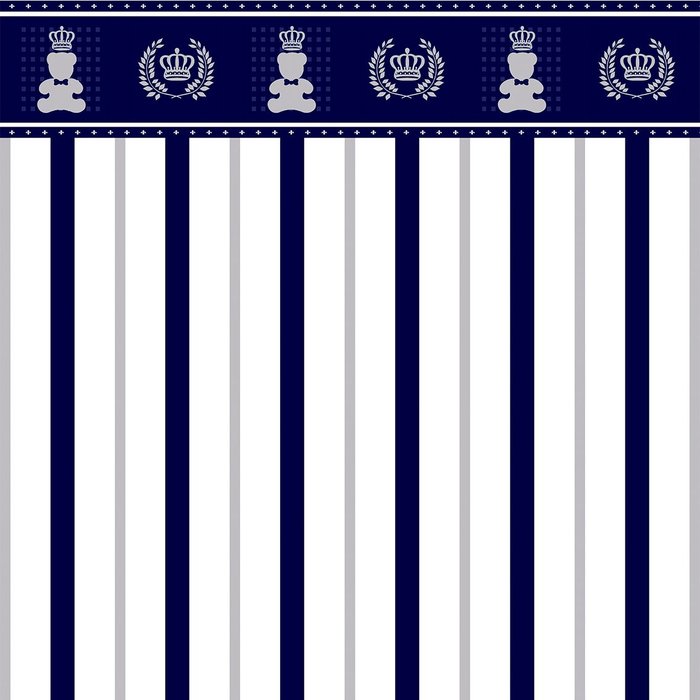 Papel de Parede Adesivo Para Meia Parede Quarto Bebê Azul Marinho Branco Cinza Com Faixa de Ursinho