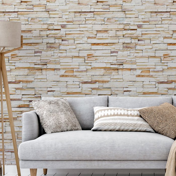 Papel de Parede Adesivo Pedras Palitos em Tons de Bege 12m