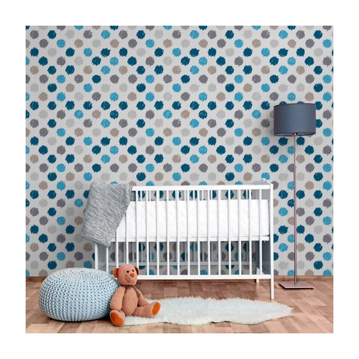 Papel de Parede Adesivo Poás Bolinha Rabisco Azul Azul