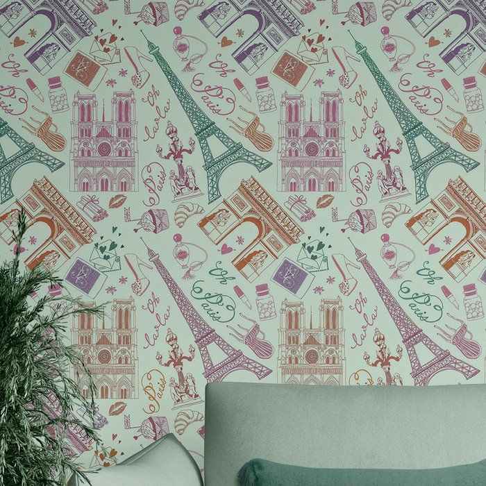 Papel De Parede Adesivo Pontos Turísticos Países Verde Lavável Colorido