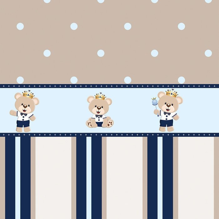 Papel de Parede Adesivo Quarto Bebê Menino com Faixa Ursinho Príncipe Azul Marinho Bege - Ssbb-118