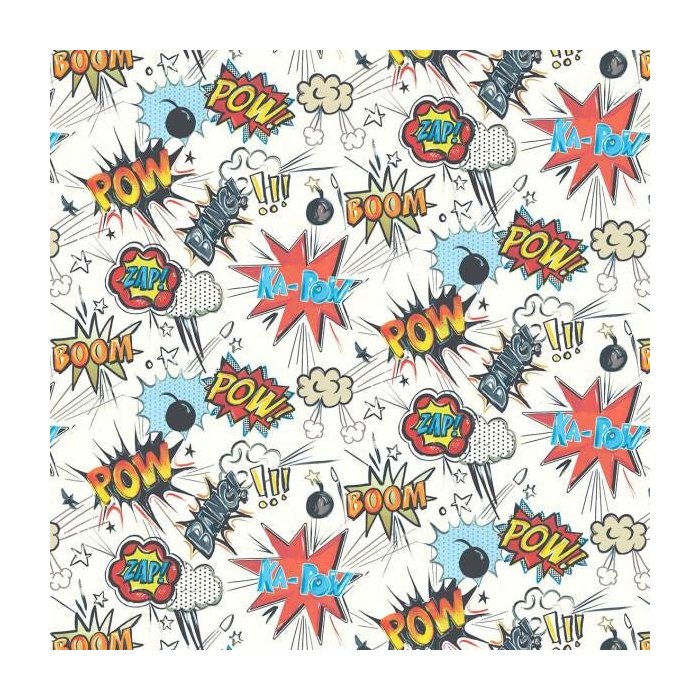 Papel de Parede Adesivo Quarto Masculino Boom Pow Bang Onomatopéia SSTE-012 - ROLO - 3,00M X 50cm (