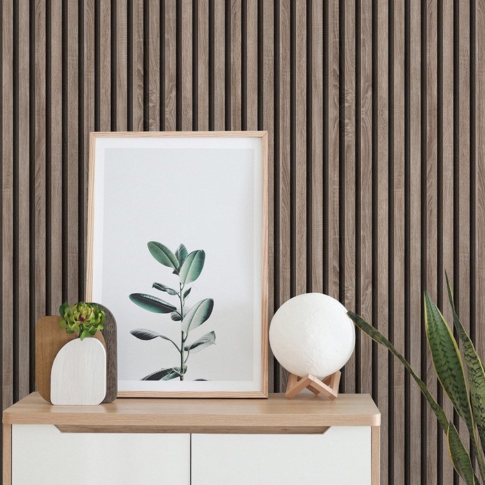 Papel de Parede Adesivo Ripado Detalhes em Madeira 12m