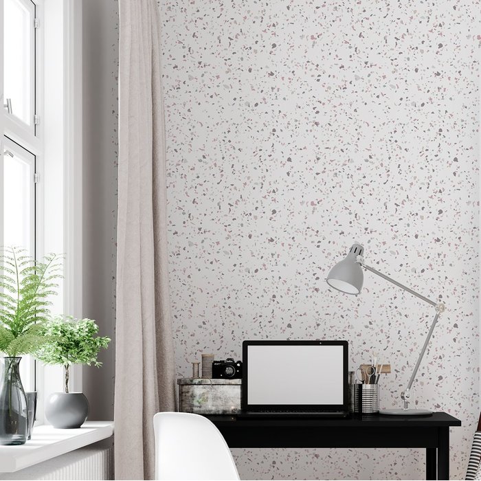 Papel de Parede Adesivo Textura Branco com Pedras Coloridas Granilite
