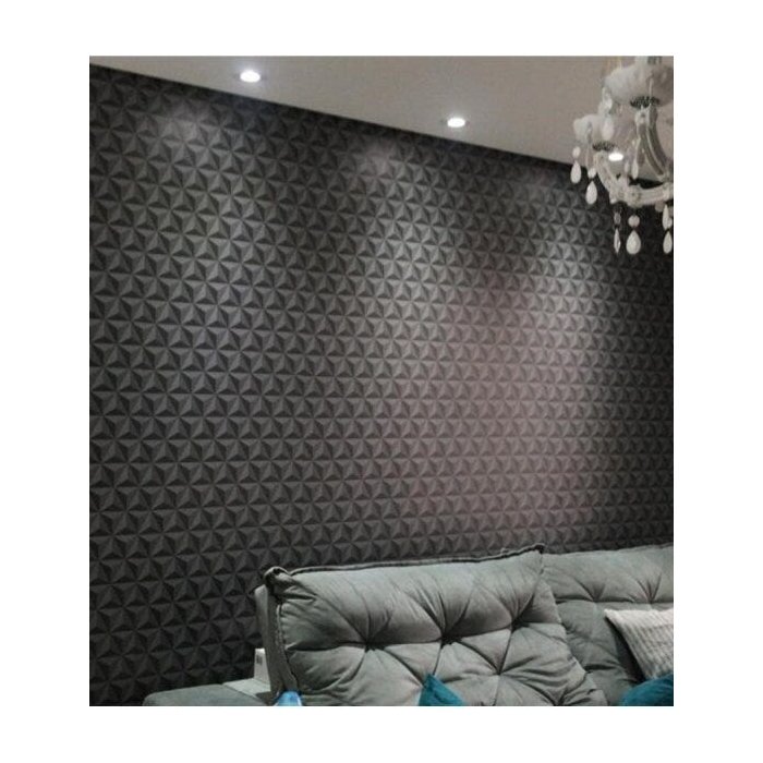 Papel De Parede Adesivo Triângulos 3D Verde Escuro Preto Com Laminação