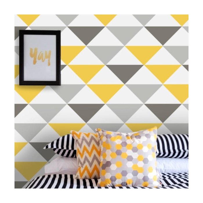 O papel de parede adesivo triângulos amarelos e cinzas é ideal para decorar quartos de bebês, quartos de crianças e salas. Use a criatividade e aproveite essa linda estampa para deixar o seu ambiente mais alegre e harmonioso É uma ótima opção para você repaginar o seu ambiente de forma rápida, fácil, sem sujeira e com muita economia.