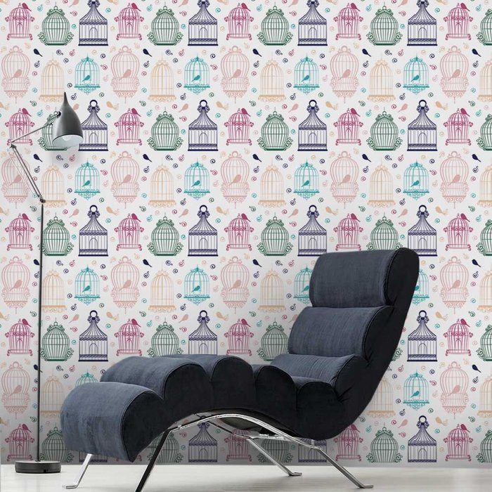 Papel de Parede Animal Gaiolas para Aves Coloridas Gh Papel de Parede 2,2m