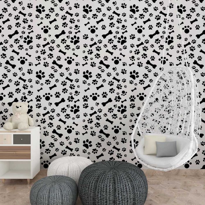 Papel de Parede Animal Pegadas e Ossinhos Pretos Gh Papel de Parede 2,5m