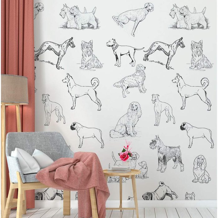 Papel de Parede Animal Print Desenho de Cachorros-60x300cm