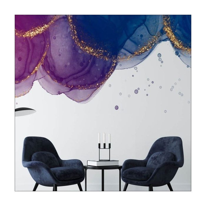 Papel de Parede Aquarela Azul e Roxo com Dourado - 0,50cm x 3,50m