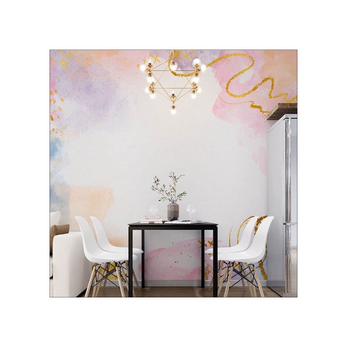 Papel De Parede Aquarela Em Tons Pasteis Com Dourado
