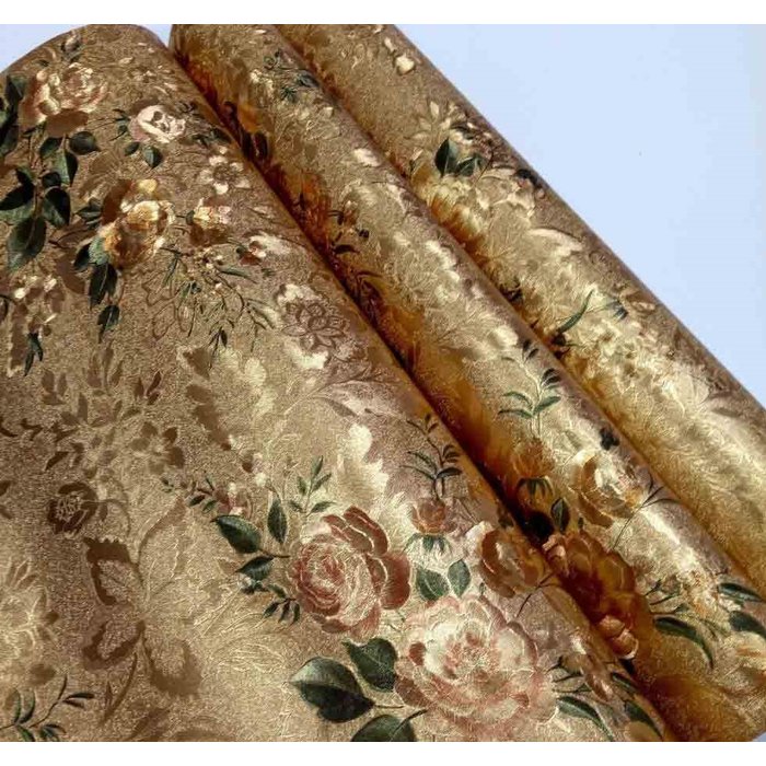 Papel De Parede Arabesco-flores-italiano-tons Dourado, Verde