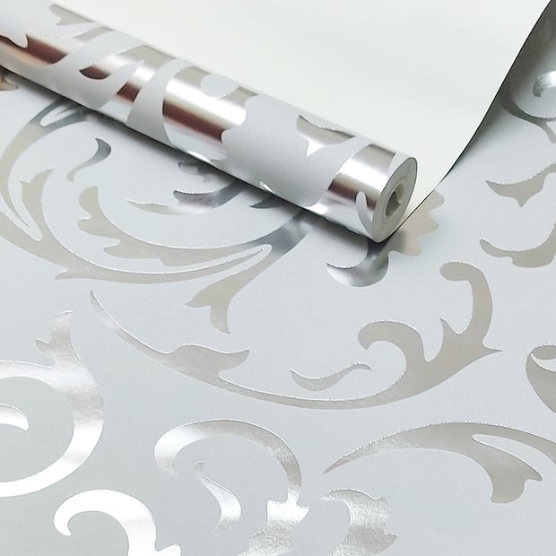 Papel de Parede Arabesco Prata Fio - Com Cola Para Aplicação