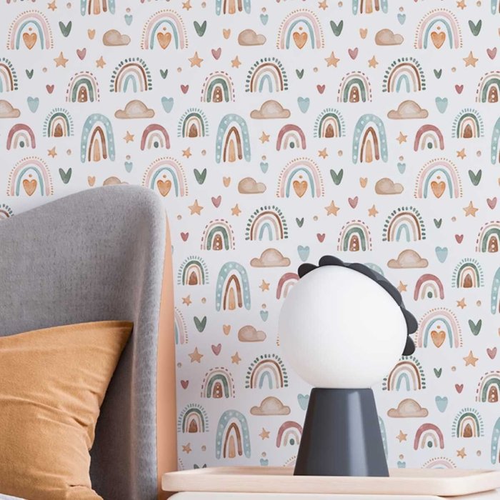 Papel de Parede Auto Colante Aquarela Infantil Arco-iris Colorido Decorado Lavavel Quarto Sala 18m