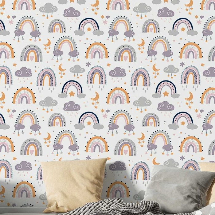 Papel de Parede Auto Colante Infantil Aquarela Arco-iris Roxo Vinil Decorativo Quarto Sala 18m