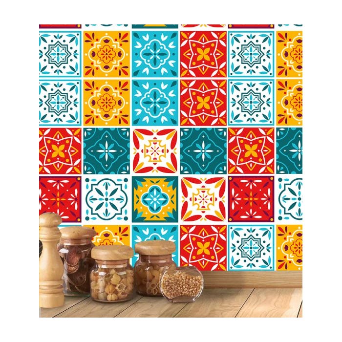Papel de Parede Autocolante Azulejo Ladrilho Português com Pelicula Protetora Multicolorido
