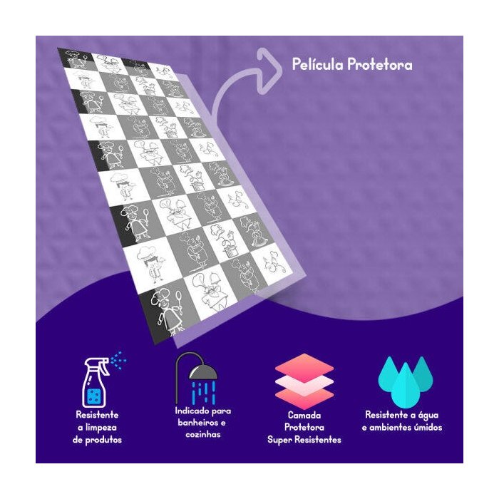 - Produzido em vinil adesivo, próprio para decoração.