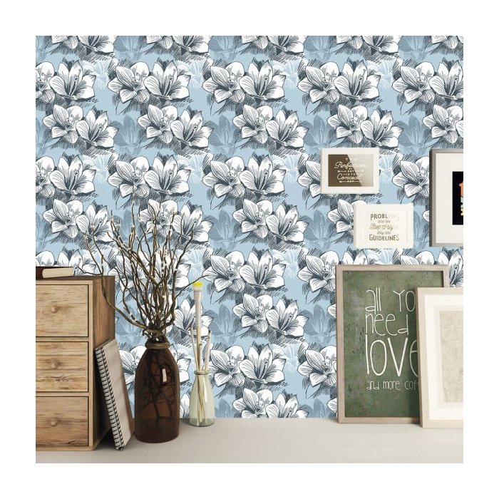 Papel De Parede Autocolante Flores Branca Com Fundo Azul