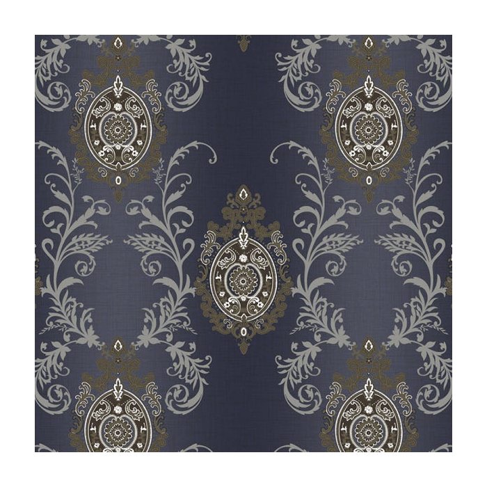 Papel de Parede Azul Marinho com Detalhes em Prata e Dourado Para Sala de Estar