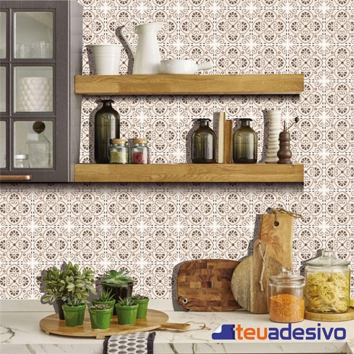Papel de Parede Azulejo Cozinha Português Lávavel Rosa 3m Marrom
