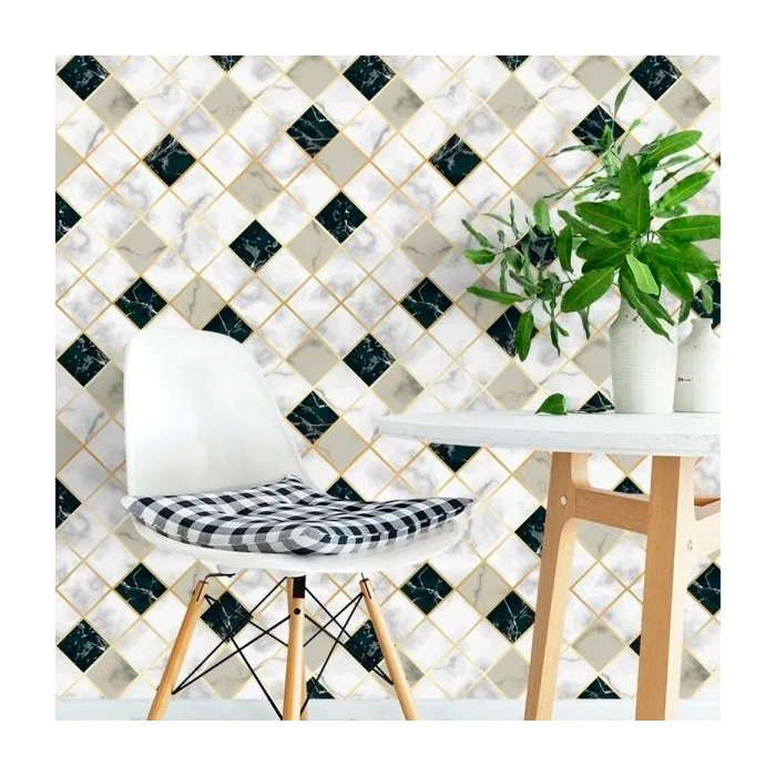 Papel De Parede Azulejo Mármore Branco Cinza E Preto