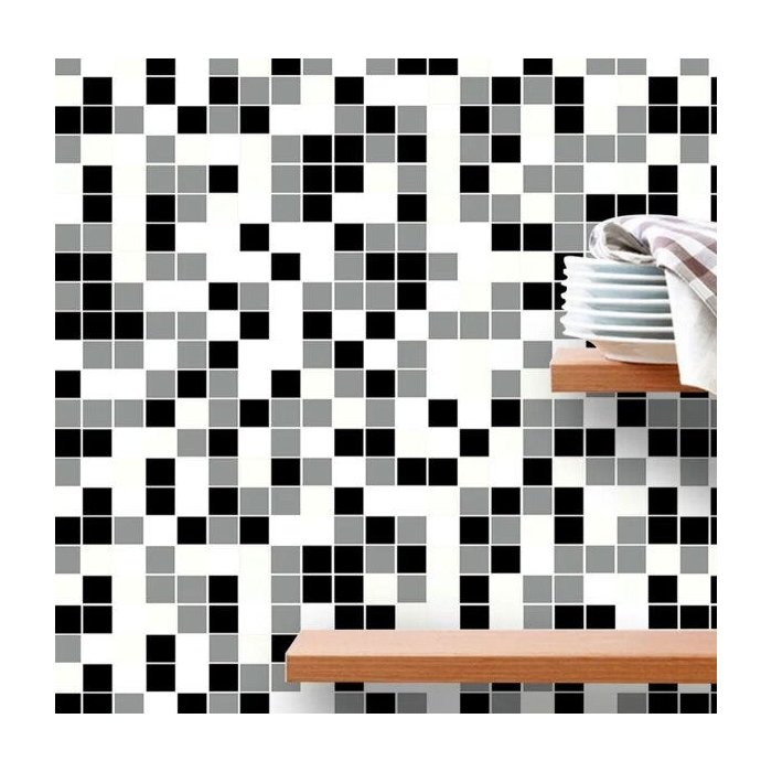 Papel De Parede Azulejo Pastilhas Em Preto e Branco