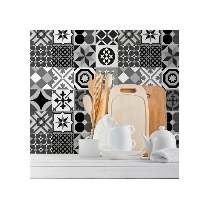 Papel De Parede Azulejo Preto E Branco Preto e Branco