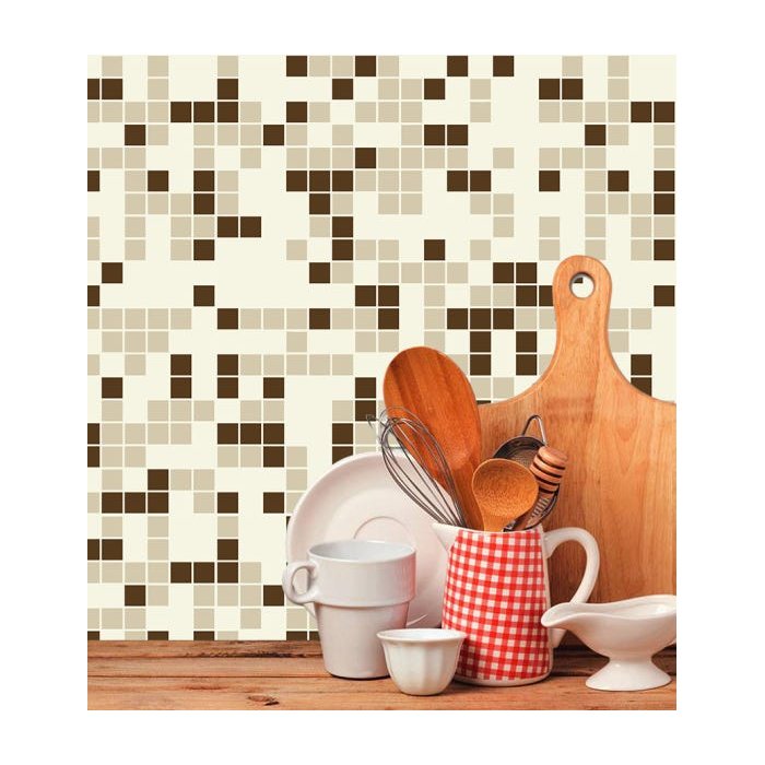 Papel de Parede Azulejo Quadradinhos em Tons de Bege, Branco e Marrom com Pelicula Protetora Branco, Bege e Marrom