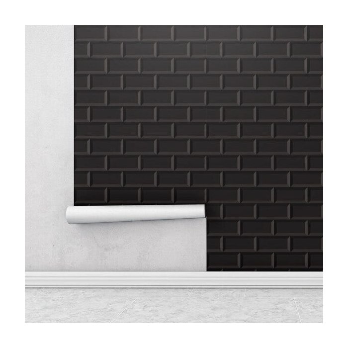 Papel De Parede Azulejo Tijolo Preto 3D Para Cozinha Com Laminação