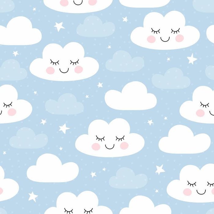 Papel De Parede Bebê Infantil Nuvem Chuva Nuvens Azul N4780
