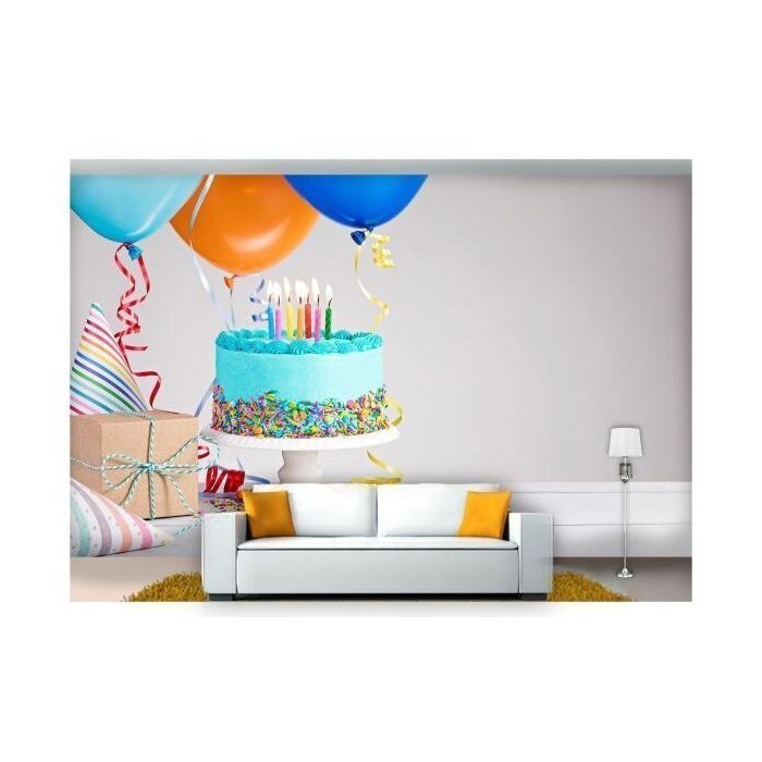 Papel De Parede Bolo Azul Festa Decorativo 3D Al95