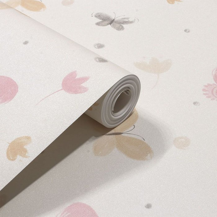 Papel de Parede Borboleta Rosa e Bege com Brilho+ Cola Inclusa