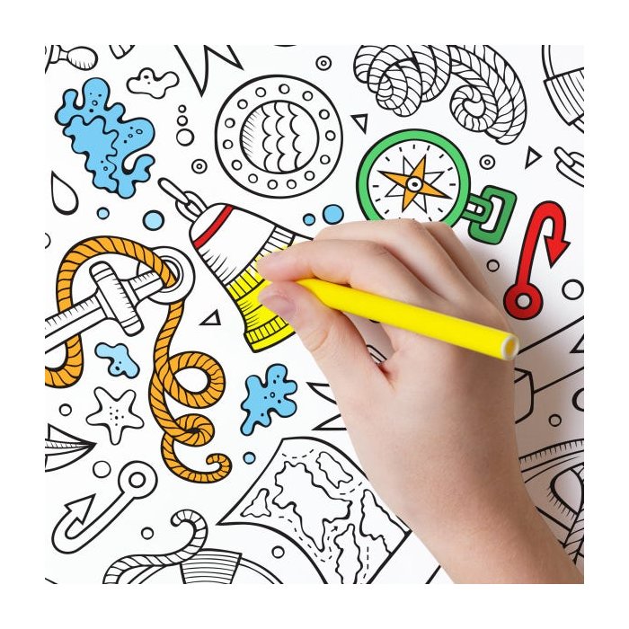 Recomendamos não passar álcool ou produtos de limpeza sobre o adesivo depois de pintado com lápis de cor ou giz de cera.