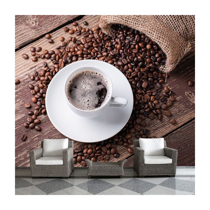 Papel de Parede Café Cafeteria Xícara Grãos Sala Painel - 203pcp
