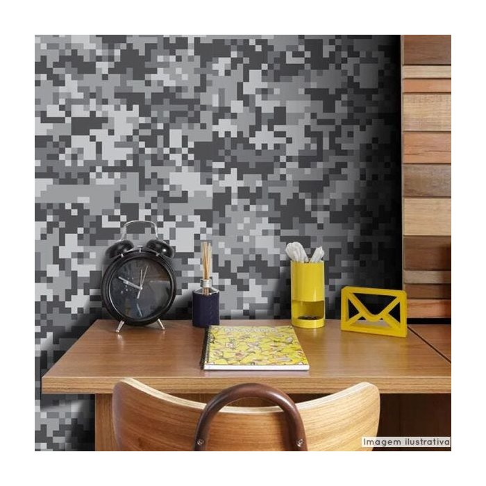 Papel de Parede Camuflado Pixel Cinza 0,58x2,60m