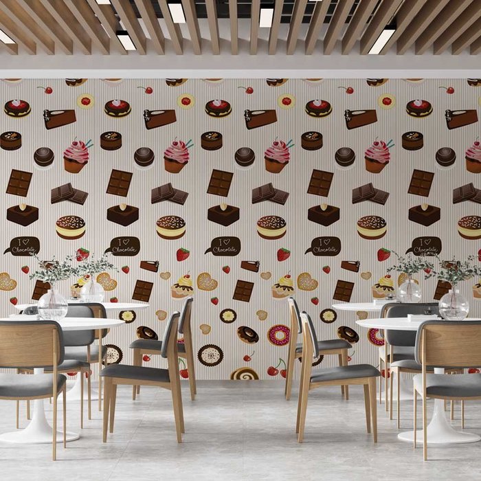 Papel de Parede Casual Bolos Doces Tortas Marrons Gh Papel de Parede 3,3m