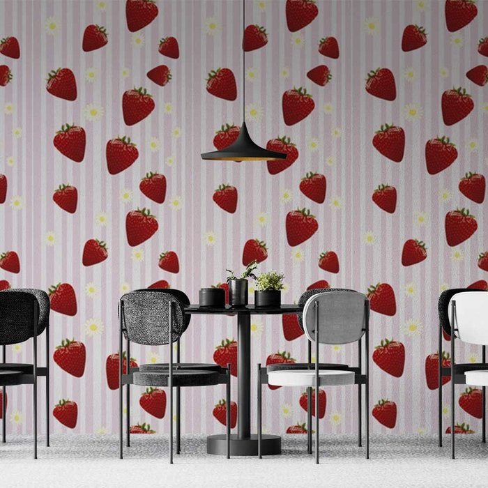 Papel de Parede Casual Morangos em Fundo Rosa Gh Papel de Parede 2,5m