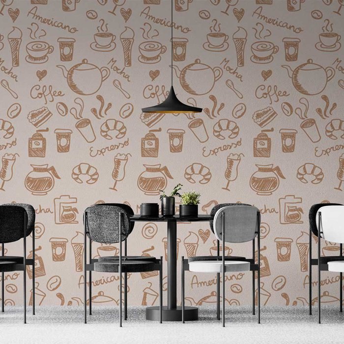 Papel de Parede Casual Rosa Desenhos Café Gh Papel de Parede 3,5m Rosa