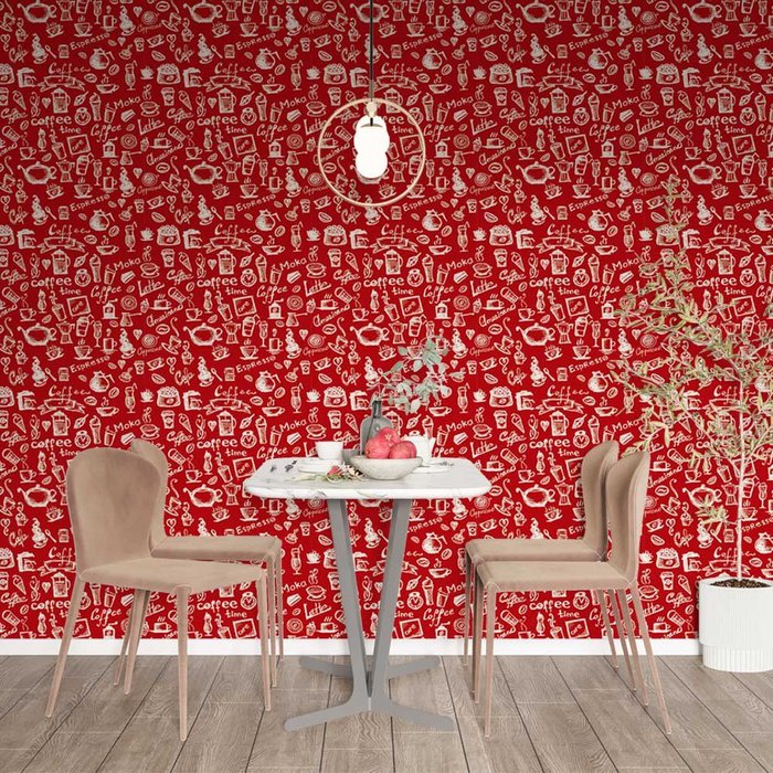 Papel de Parede Casual Vermelho Desenhos Cafeteria Gh Papel de Parede 2,2m