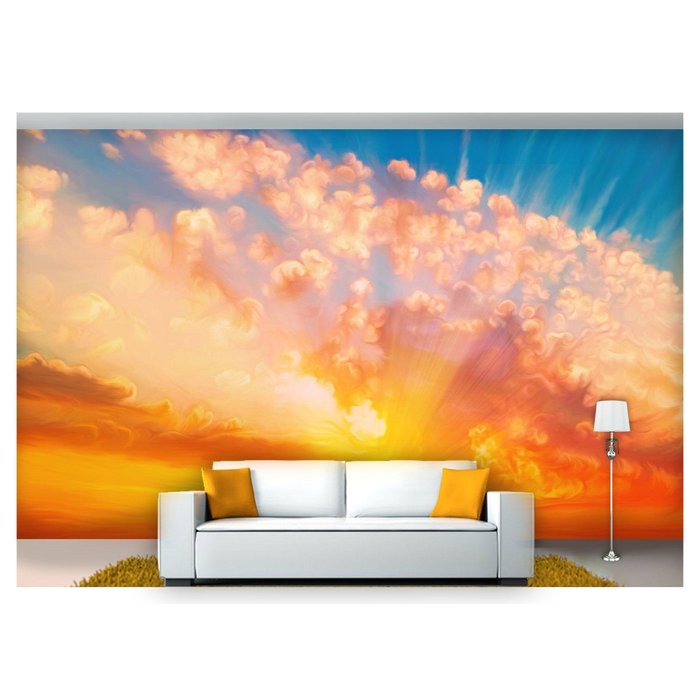 Papel De Parede Céu Nuvens Sol Pintura 3D 7,50M² Nsk105