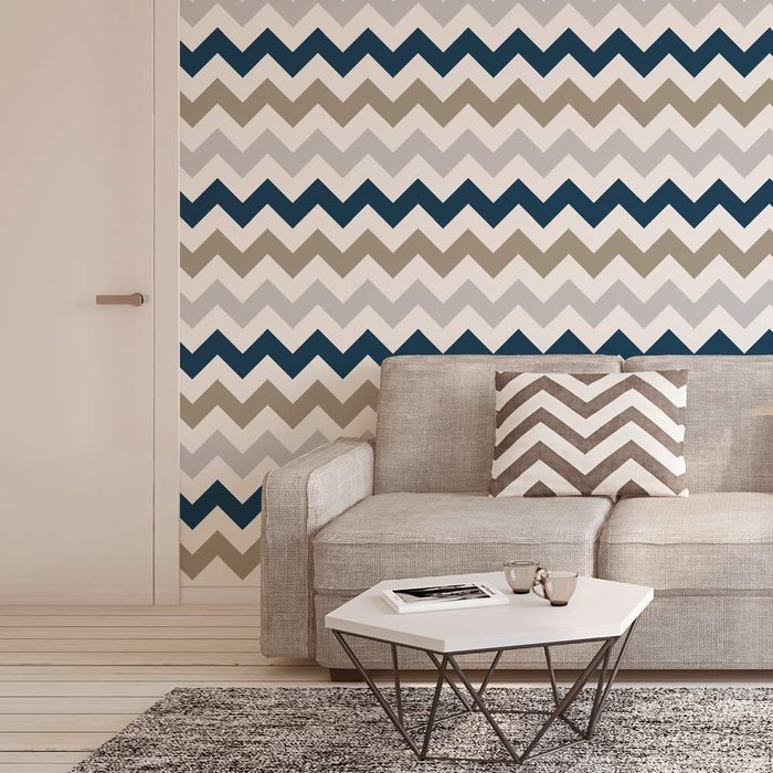 Papel de Parede Chevron Cinza com Azul e Marrom-60x300cm